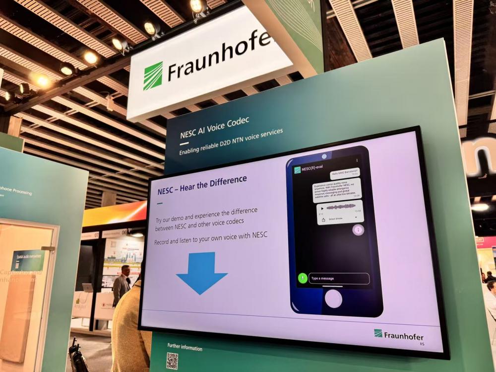 对此,Fraunhofer IIS推出了专为NTN设计的超低码率AI语音编解码器NESC,语音码率需求降低至约1kbps,为“地球任意角落”的可靠通信铺平道路。